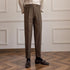 Herringbone Wool Suit Trousers Men's High Waist Straight